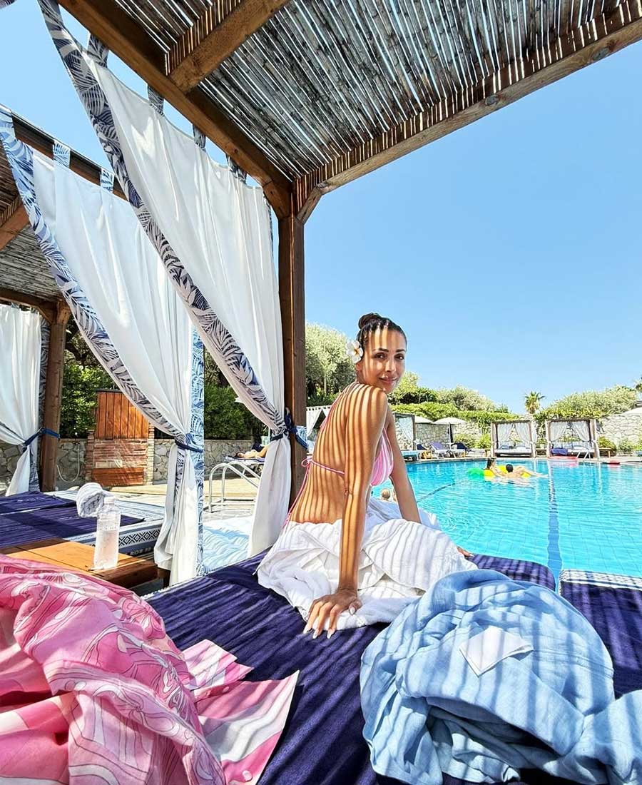 বিকিনিতে মালাইকার রোদস্নান, পঞ্চাশ পেরিয়েও গনগনে আঁচ বলিউড 'মুন্নি'র