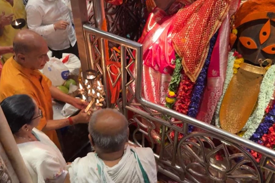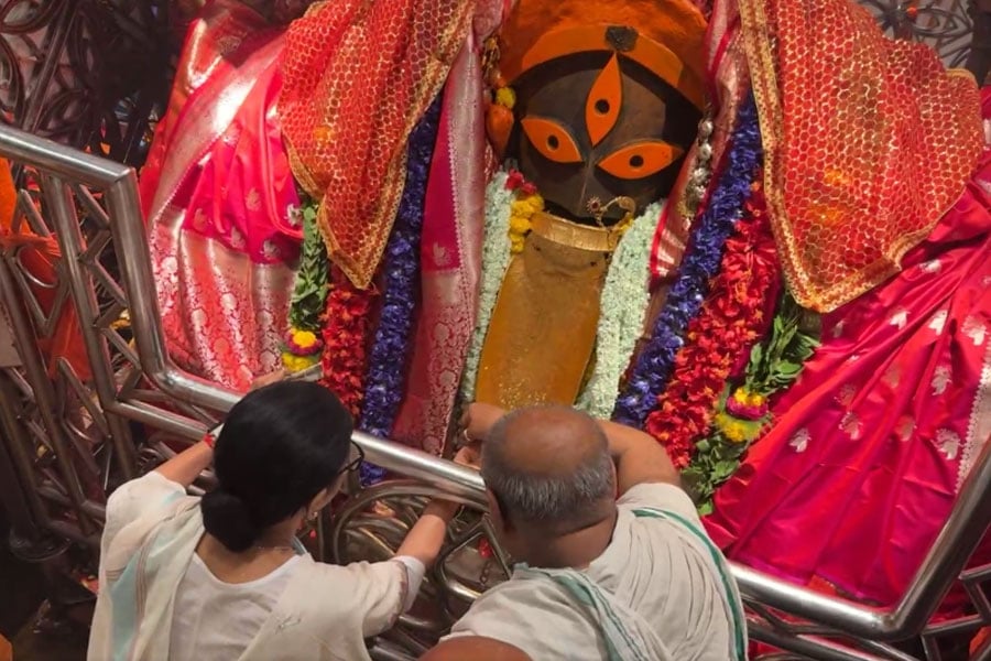 কালীঘাটের গর্ভগৃহে পৌঁছে যান মুখ্যমন্ত্রী। তাঁকে মন্দিরের পুরোহিতরা অভ্যর্থনা জানান। মহানবমীর আরতির আয়োজন করা হয় মন্দিরে।