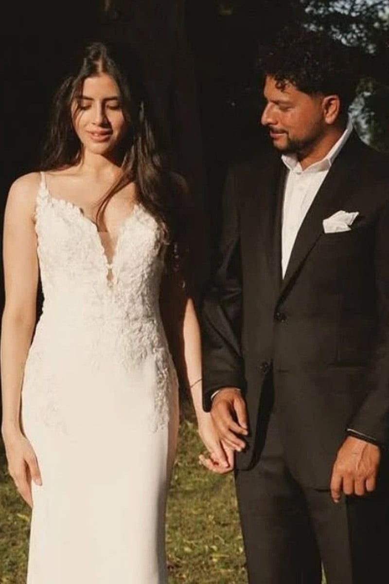 জীবনের নতুন অধ্যায় শুরু করেছেন টিম ইন্ডিয়ার তারকা স্পিনার কুলদীপ যাদব। শনিবার দীর্ঘদিনের বান্ধবী বংশিকা চাড্ডার সঙ্গে উত্তরাখণ্ডের অন্যতম জনপ্রিয় শৈলশহর মুসৌরিতে বিবাহবন্ধনে আবদ্ধ হয়েছে কেডি। এরপরেই চায়নাম্যান বোলারের স্ত্রী বংশিকা চাড্ডাকে নিয়ে সোশাল মিডিয়ায় আগ্রহ তৈরি হয়েছে। কী করেন তিনি? তাঁর লাইফস্টাইল, শিক্ষাগত এবং পেশাগত জীবন নিয়েও চলছে আলোচনা। ছবি কুলদীপ যাদবের ইনস্টাগ্রাম।