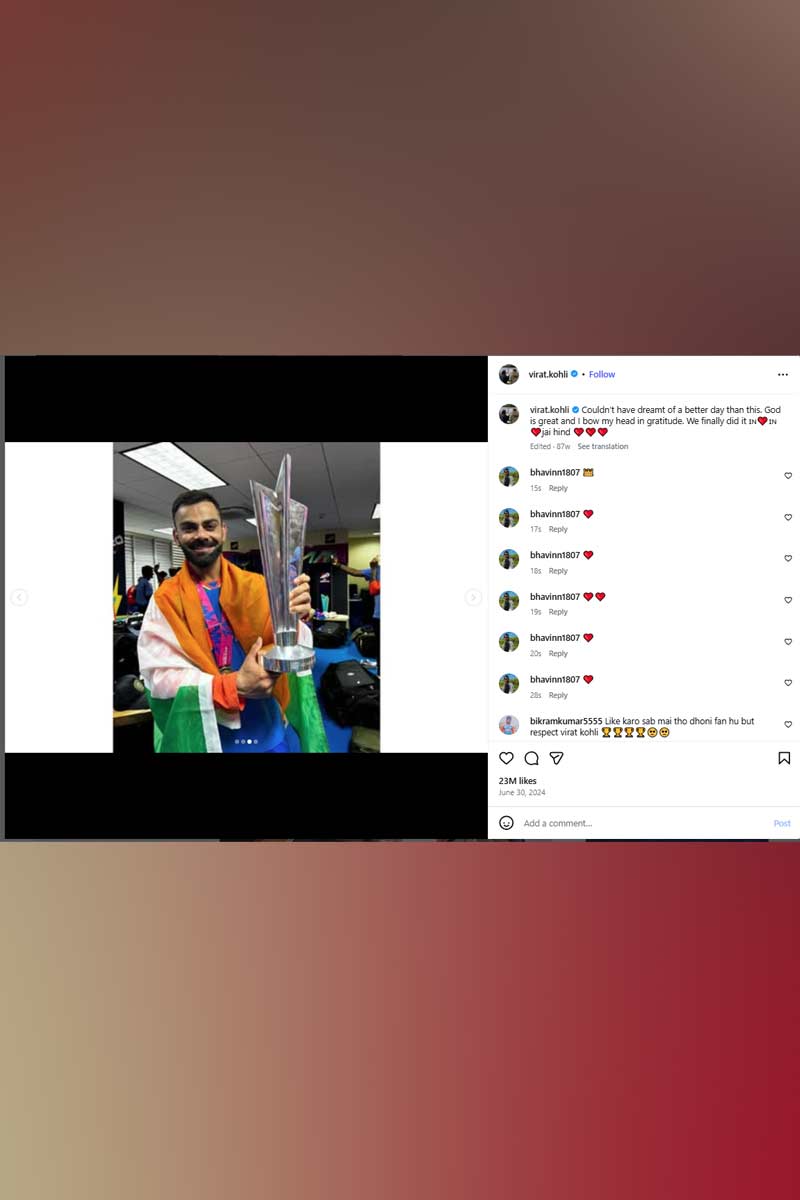 এমনকী বিরাট কোহলির এক দীর্ঘকালীন রেকর্ড ভেঙে দিয়েছেন রশ্মিকা মন্দানা! বর্তমানে ইনস্টাগ্রামে ২৭৪ মিলিয়ন ফলোয়ার রয়েছে কিং কোহলির। ওয়েস্ট ইন্ডিজকে হারিয়ে ভারতের টি-২০ বিশ্বকাপ জয়ের ছবি ইনস্টা পেজে পোস্ট করেন বিরাট। ২২.৯ মিলিয়ন, অর্থাৎ প্রায় ২ কোটি ৩০ লক্ষ ইউজার ‘লাইক’ করেছিল সেই পোস্ট।