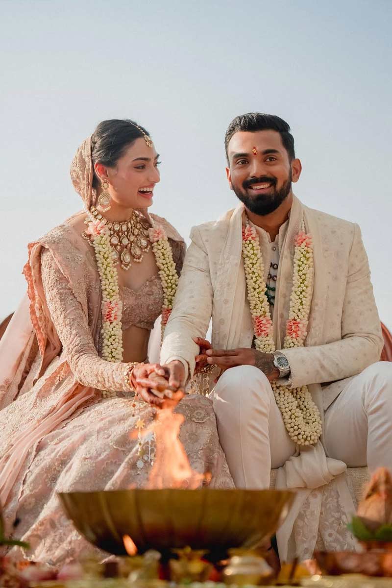 আইভরি ও গোলাপি রঙের আভাযুক্ত পোশাকে সেজে বিয়ে সেরেছিলেন তারকাদম্পতি কে এল রাহুল ও অভিনেত্রী আথিয়া শেট্টি। ২০২৩ সালে সাতপাক ঘোরেন তাঁরা। তাঁদের বিয়ের ছবিতে প্রাপ্ত লাইকের সংখ্যা ছিল ৮.৩ মিলিয়ন।