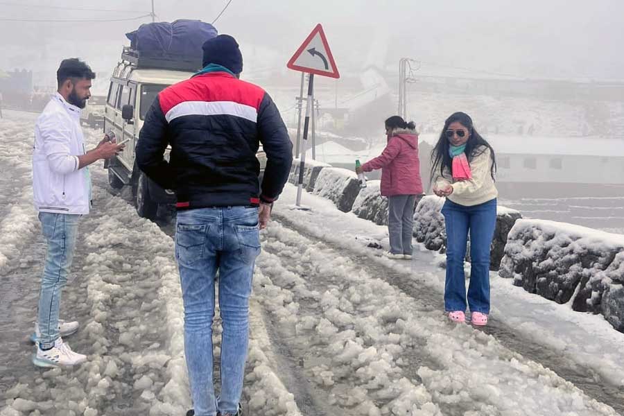 শুরু হয়েছে বরফের গোল্লা পাকিয়ে খুনসুটি আবার সেলফি তোলার জন্য হুটোপুটি। কে বলবে ভূমিধসে সিকিমেও একাধিক রাস্তা অবরুদ্ধ হয়ে আছে!
