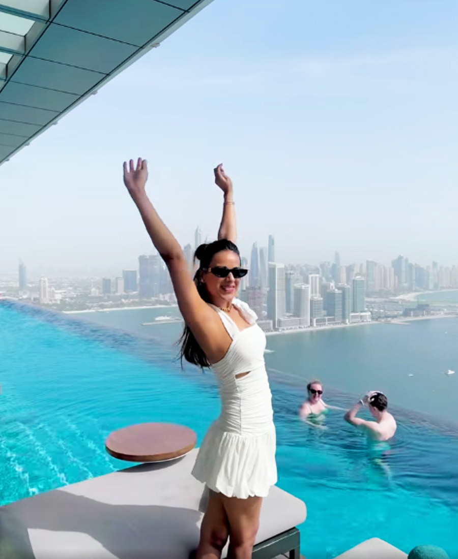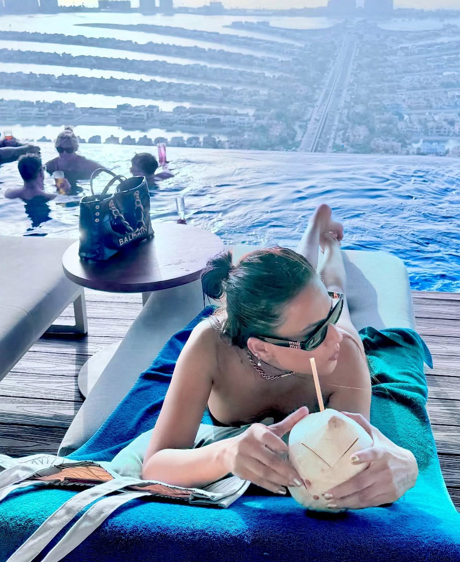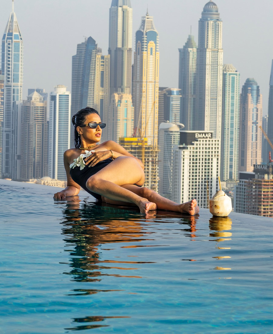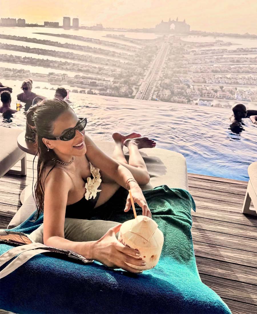 ফুলে ঢাকা বক্ষবিভাজিকা, আকাশছোঁয়া পুলে নায়িকার শরীরী মাদকতায় বুঁদ নেটপাড়া