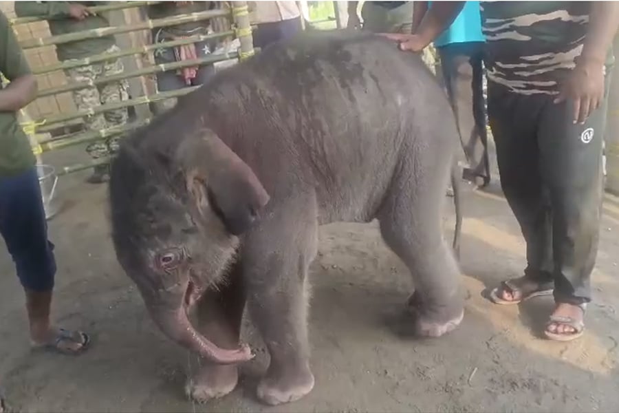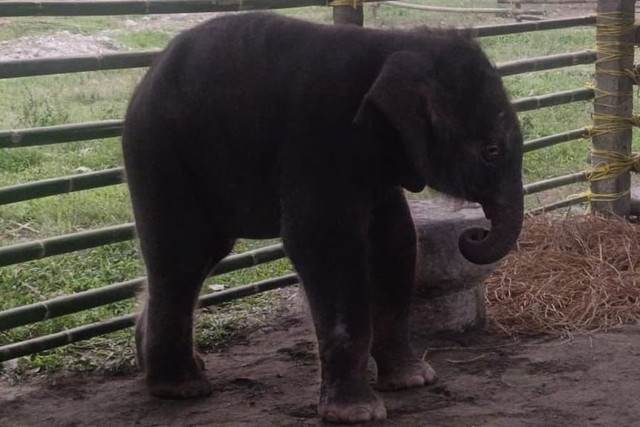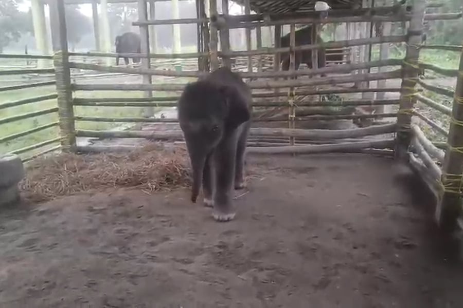 বনাঞ্চলে ছাড়ার পরে হাতির পাল নেয়নি ওই শাবকটিকে। ফিরিয়ে দিয়েছে মা। অবশেষে ঠাই জলদাপাড়ার পিলখানায়। তথ্য ও ছবি : রাজ কুমার