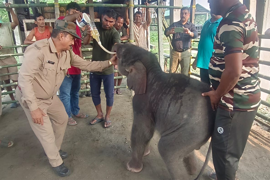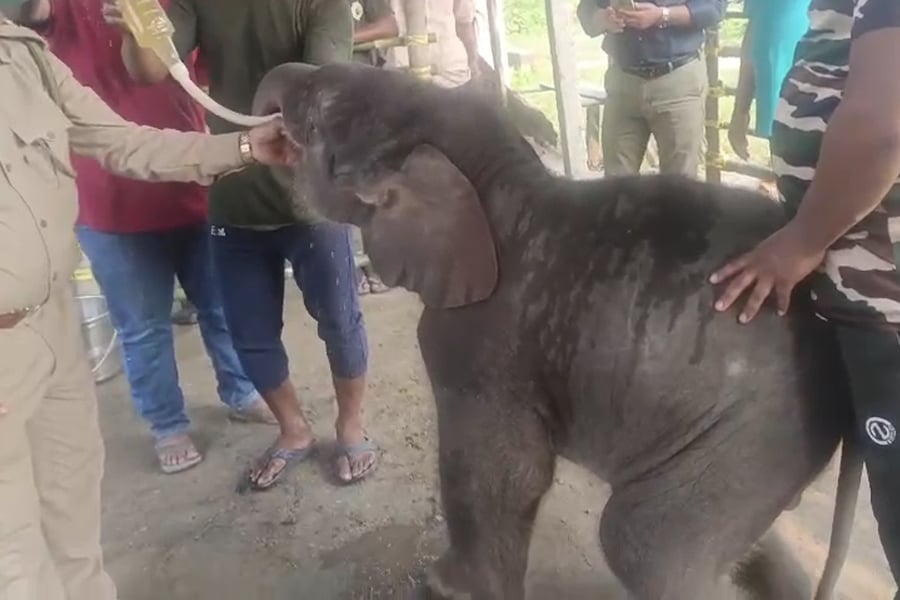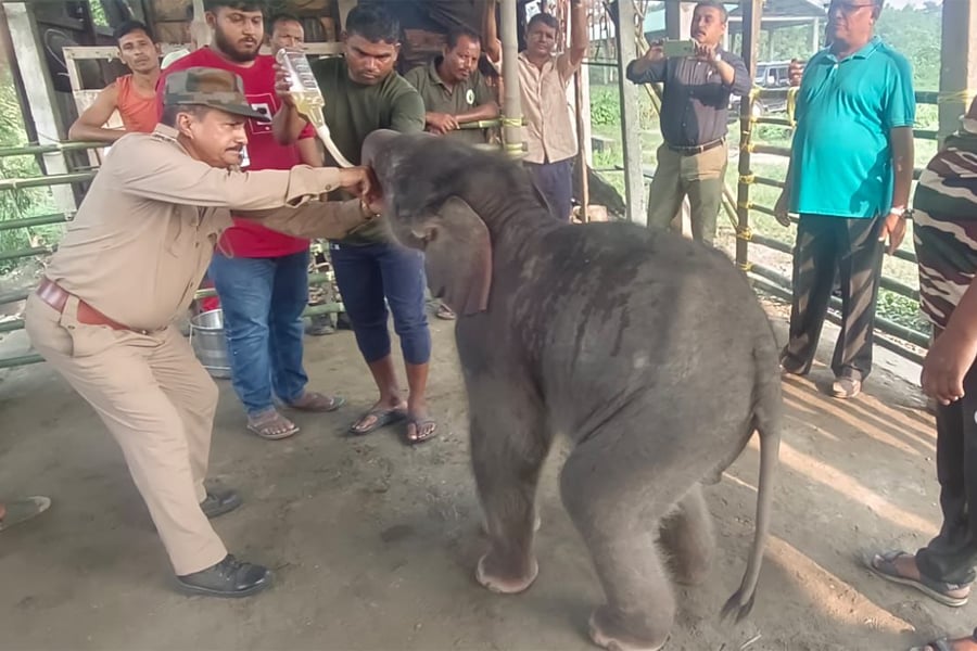 ইন্দো নেপাল সীমান্তের মেচি নদী থেকে উদ্ধার ১৫ দিন বয়সের হস্তিশাবক এল জলদাপাড়া জাতীয় উদ্যানে। তথ্য ও ছবি : রাজ কুমার