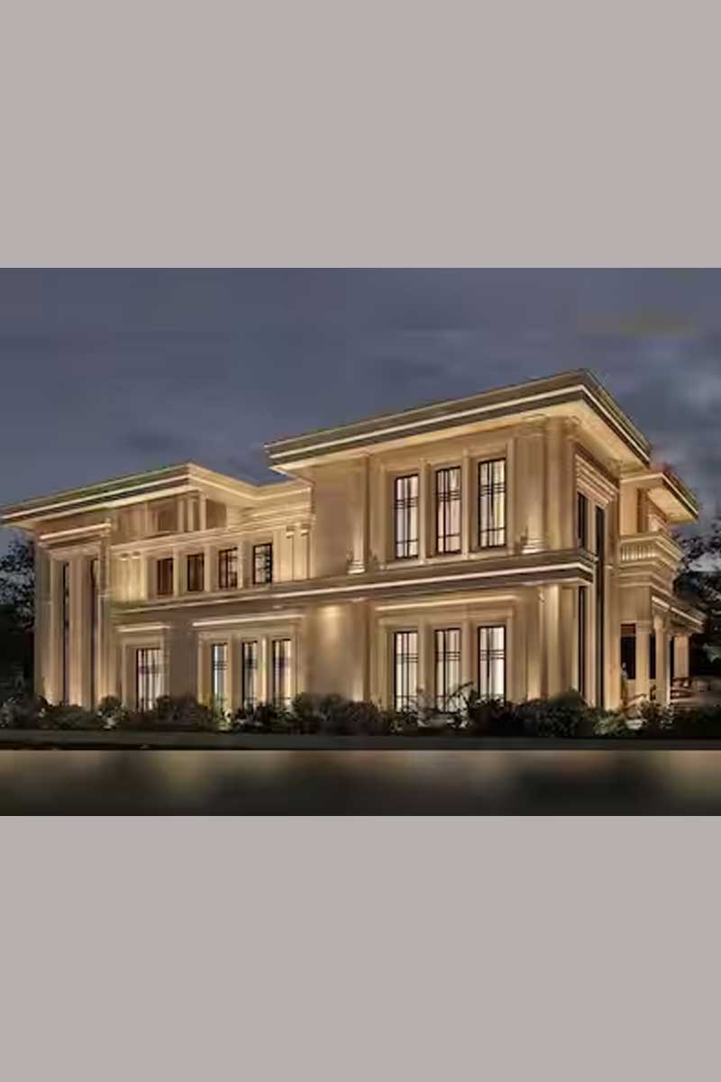 বাড়িটি আধুনিক নিও-ক্লাসিক্যাল ডিজাইনের।