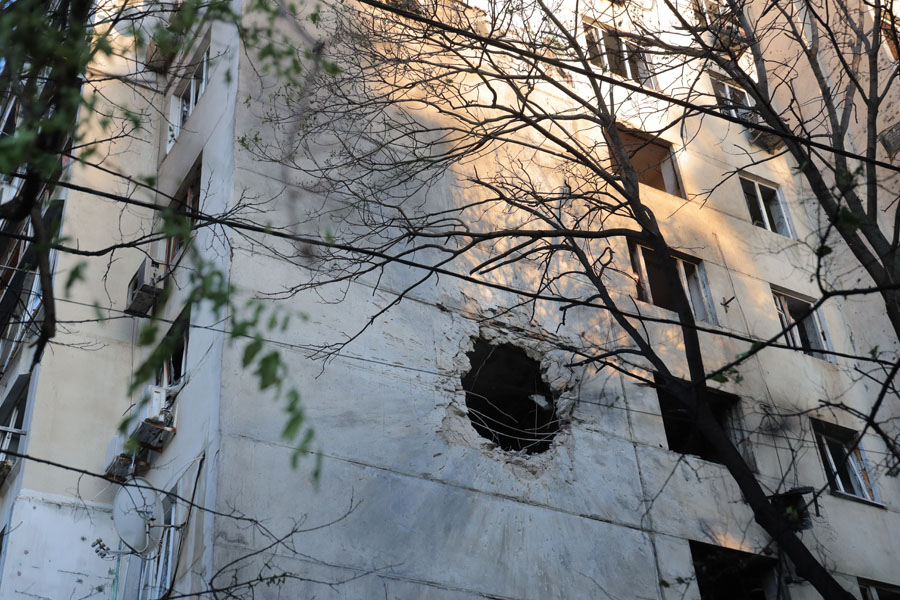 ৭ সেপ্টেম্বর, ২০২৫। রুশ হামলায় ওডেসার একটি বহুতল ব্যাপকভাবে ক্ষতিগ্রস্ত হয়েছে। ভবনের মাঝ বরাবর তৈরি হয়েছে বড় গর্ত। ছবি: এএফপি।