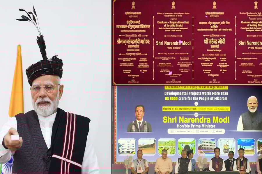 ১৩ সেপ্টেম্বর, শনিবার। আইজলে একাধিক উন্নয়নমূলক প্রকল্পের উদ্বোধন এবং শিলান্যাস করলেন প্রধানমন্ত্রী নরেন্দ্র মোদি। ছবি: পিটিআই।