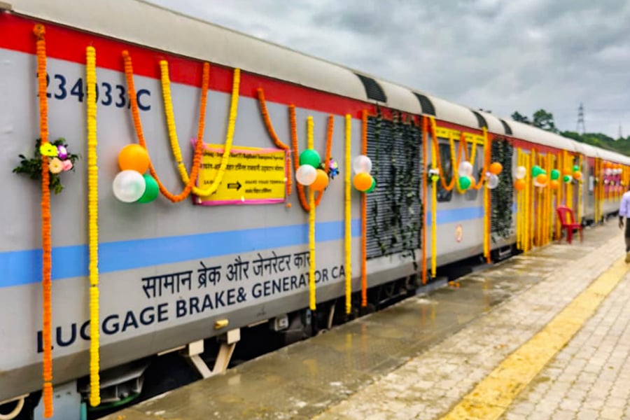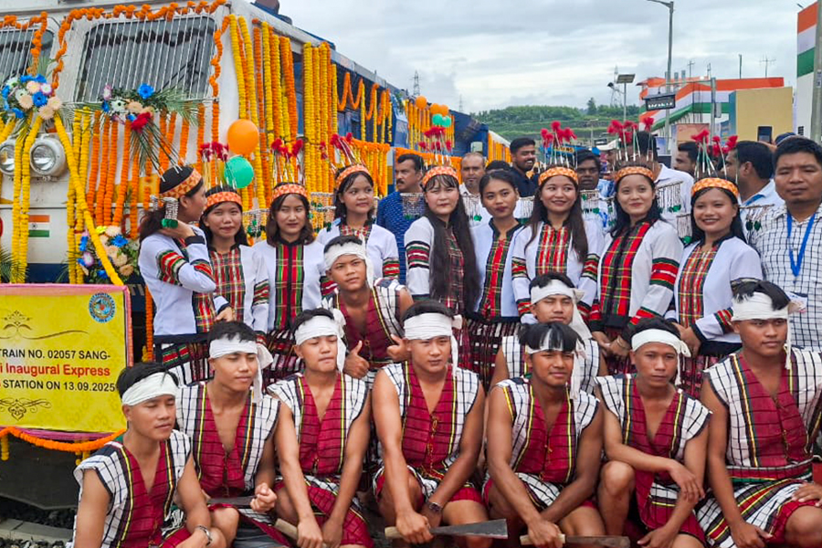 ১৩ সেপ্টেম্বর, শনিবার। আইজল থেকে দিল্লিকে যুক্ত করে রাজ্যের প্রথম রাজধানী এক্সপ্রেস চালু হল। নাম সাইরাং-দিল্লি রাজধানী এক্সপ্রেস। ছবি: পিটিআই।