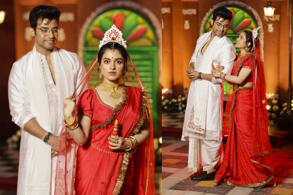 দম্পতি হিসেবে ইনিংস শুরু করার আর মাত্র কিছুক্ষণের অপেক্ষা। তার প্রাক্কালেই বর-কনে বেশে ধরা দিলেন রণজয় বিষ্ণু এবং শ্যামৌপ্তি মুদলি।
