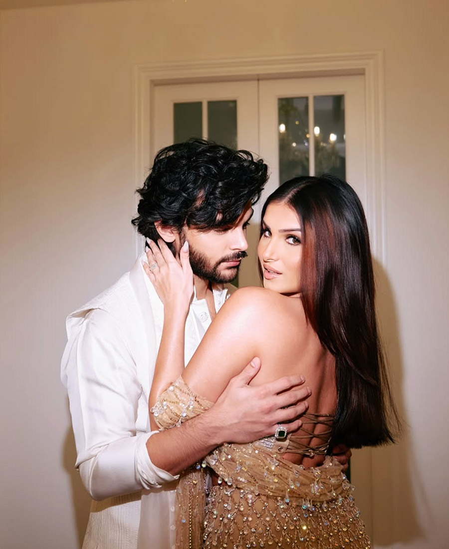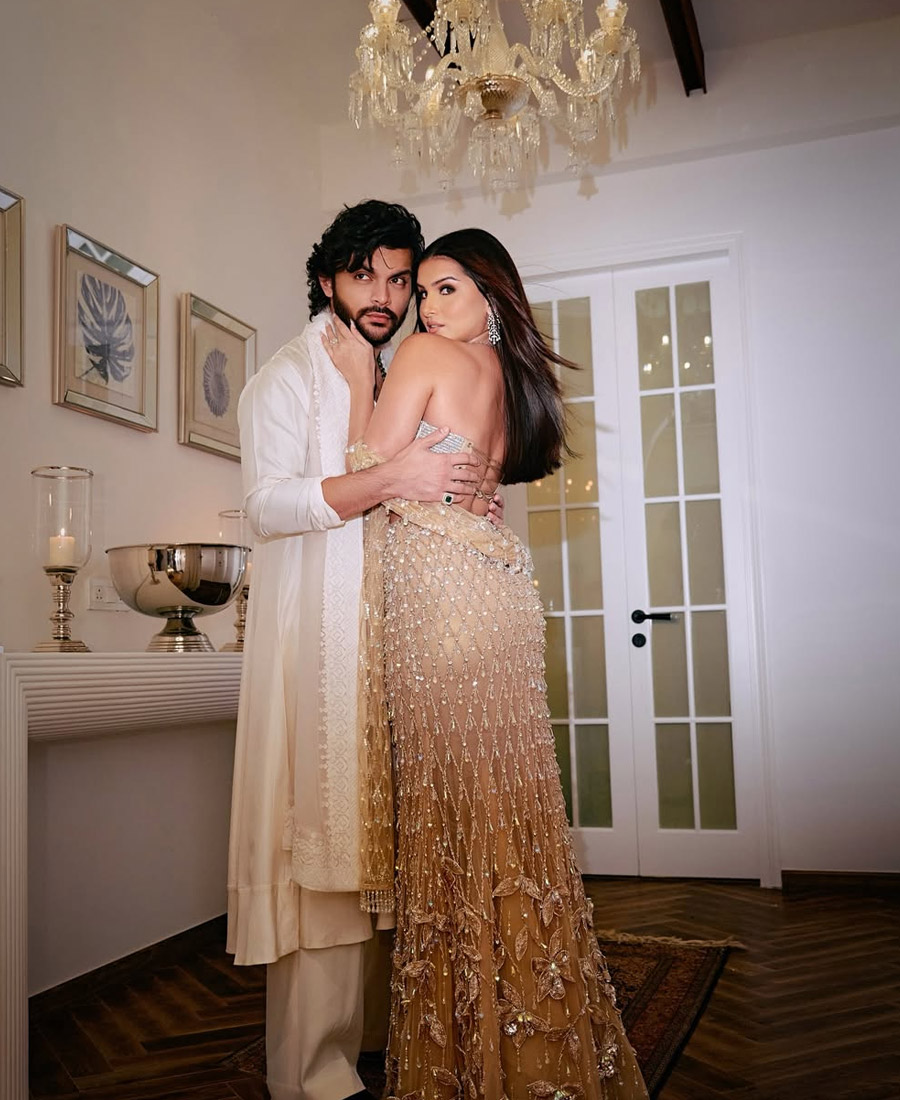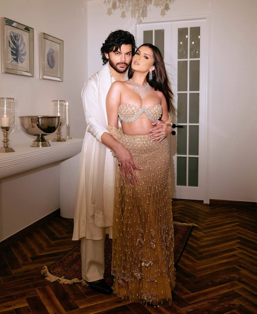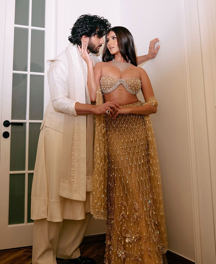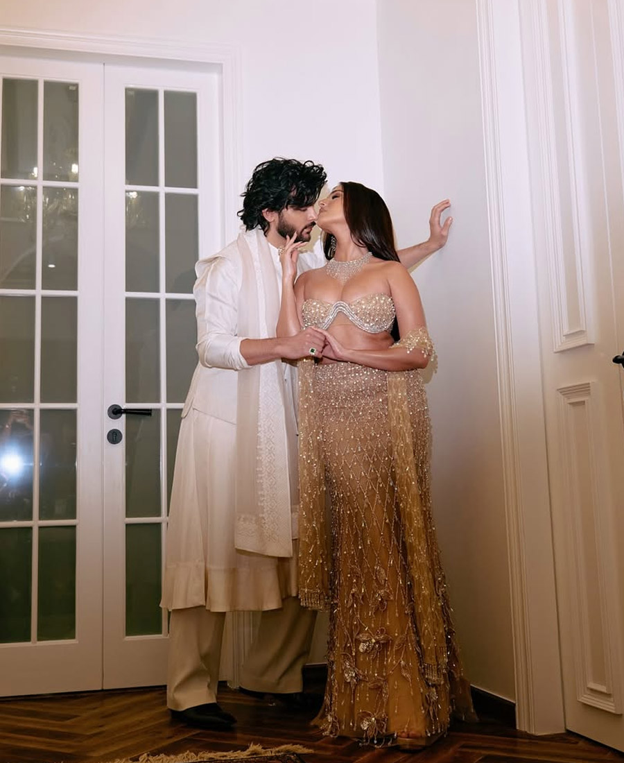 পরনে মনীশ মালহোত্রার ডিজাইন করা জমকালো লেহেঙ্গা। তারা সুতারিয়ার উপচে পড়া উত্তাল যৌবনের হাতছানিতে সাড়া না দিয়ে পারেননি বীর পাহাড়িয়াও!