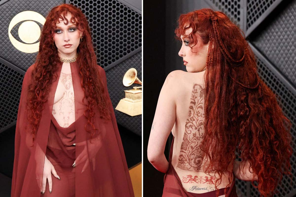 পরনে মেরুন রঙের মুগলার গাউন। স্তন প্রায় অনাবৃতি। স্তনবৃন্ত আংটি দিয়ে মোড়া। সেখান থেকে একফালি কাপড় নেমেছে নিচের দিকে। যা পা পর্যন্ত বিস্তৃত। এমন পোশাকে গ্র্যামির মঞ্চে হাজির হয়ে সকলকে চমকে দিলেন চ্যাপেল রোয়ান।