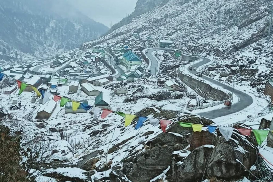 ভারী তুষারপাতে শ্বেতশুভ্র পূর্ব সিকিমের ছাঙ্গু উপত্যকা থেকে চিন সীমান্তের নাথু-লা পাস।