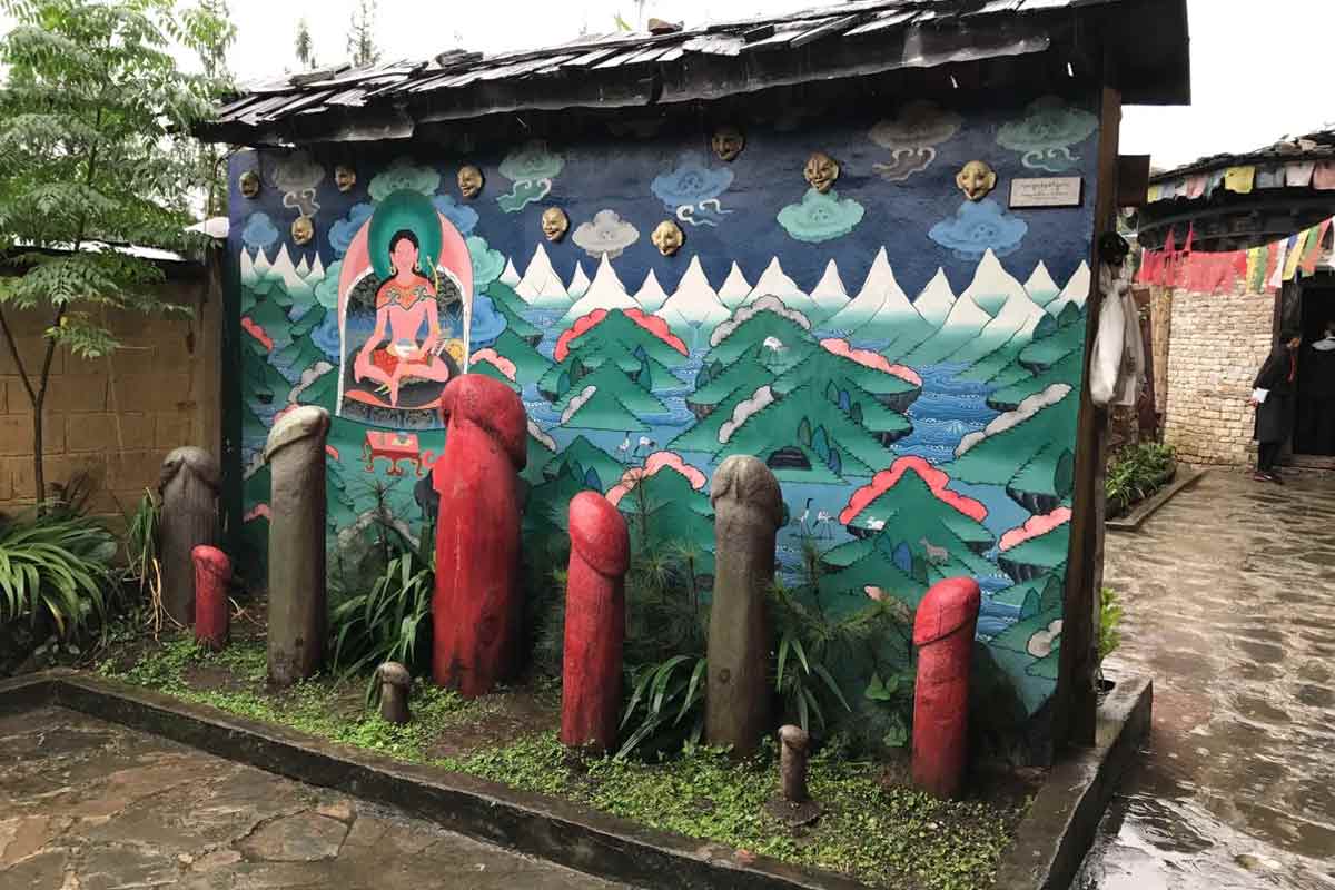 এ যে নিছক গল্পকথা নয়, সে বিষয়ে নিশ্চিত হতে আপনাকে চলে যেতে হবে ভুটানের সপসোখা গ্রামে। পুনাখা উপত্যকায় অবস্থিত এই নিরিবিলি গ্রাম। সেখানের প্রতিটি বাড়ি, প্রতিষ্ঠান, এমনকী মন্দিরের গায়েও আঁকা রয়েছে পুরুষ গোপনাঙ্গ।