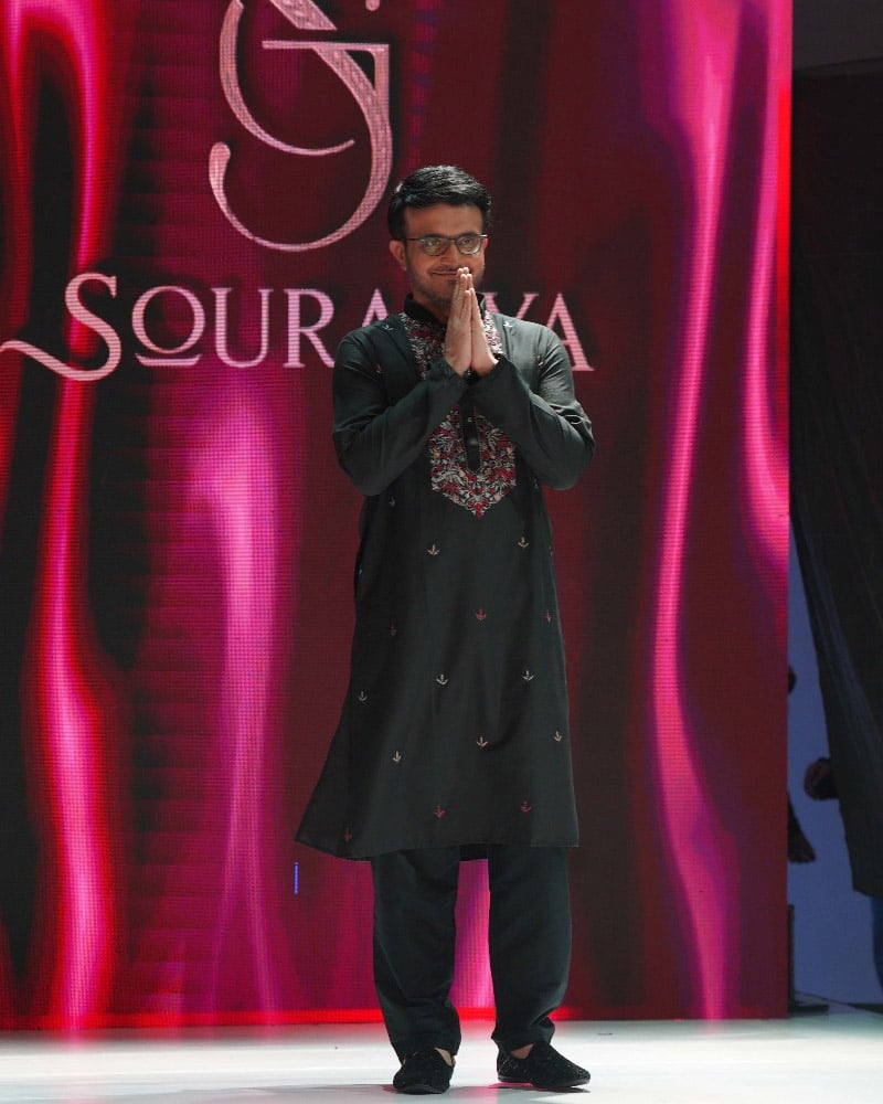 তরুণ তুর্কি মডেলদের সঙ্গে র্যাম্পে হাঁটলেন সৌরভও। একাধিক পোশাকে রীতিমতো মধ্যমণি হয়ে রইলেন প্রাক্তন বিসিসিআই প্রেসিডেন্ট।
