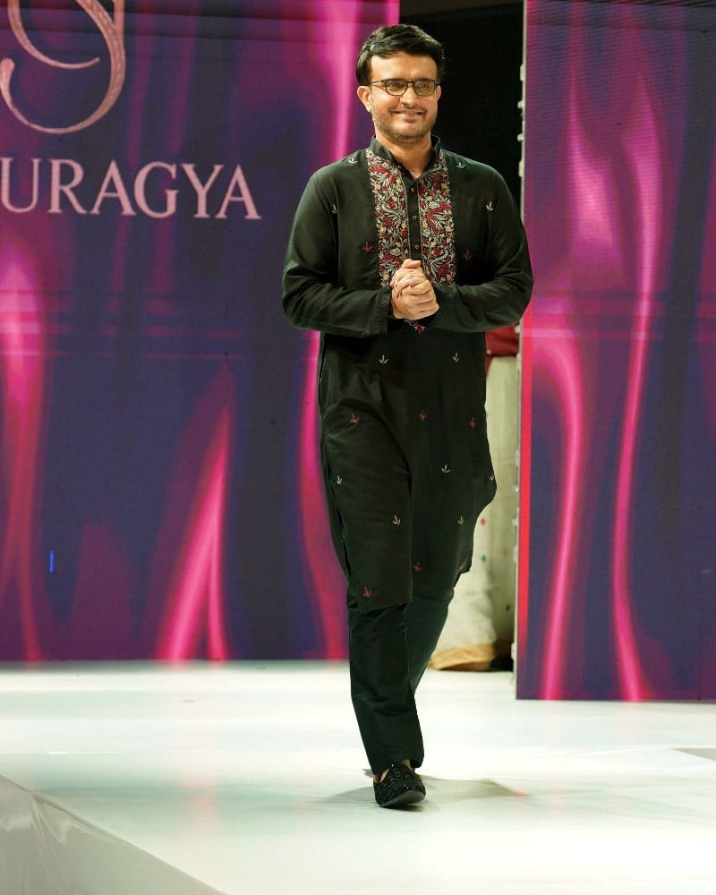 সৌরভ গঙ্গোপাধ্যায়। দক্ষতার সঙ্গে দেশকে নেতৃত্ব দিয়েছেন। ক্রিকেট প্রশাসন সামলাতে পারেন। আবার র্যাম্প ওয়াকে দ্যুতিও ছড়াতে পারেন। কলকাতার পাঁচতারা হোটেলের বল রুম। কালো পাঞ্জাবিতে আরও বেশি ঝকঝকে লাগছিল তাঁকে।