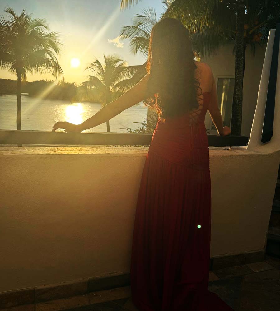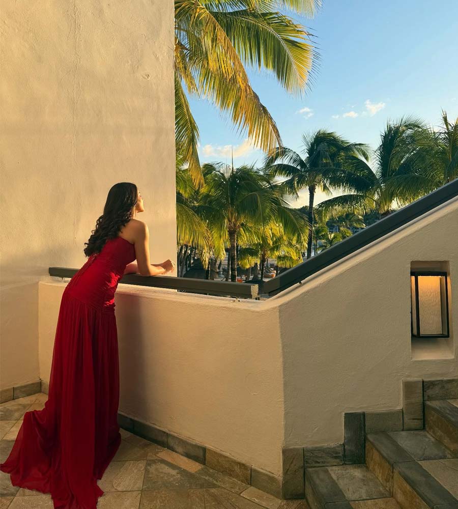 উন্মুক্ত কাঁধ, লং গাউনে যেন রূপকথার রানি শুভশ্রী গঙ্গোপাধ্যায়। সদ্য স্বামী রাজ চক্রবর্তীর সঙ্গে ঘুরতে গিয়েছিলেন। সেখানেই এই ছবি শুট করা।
