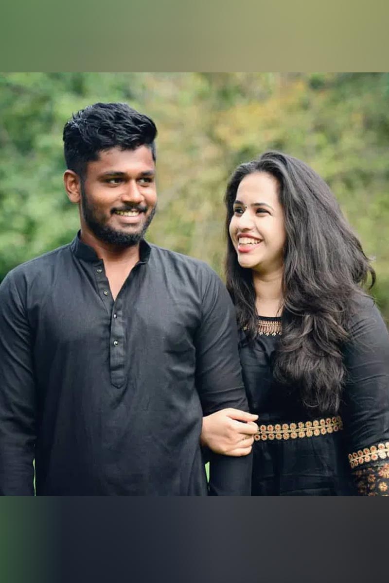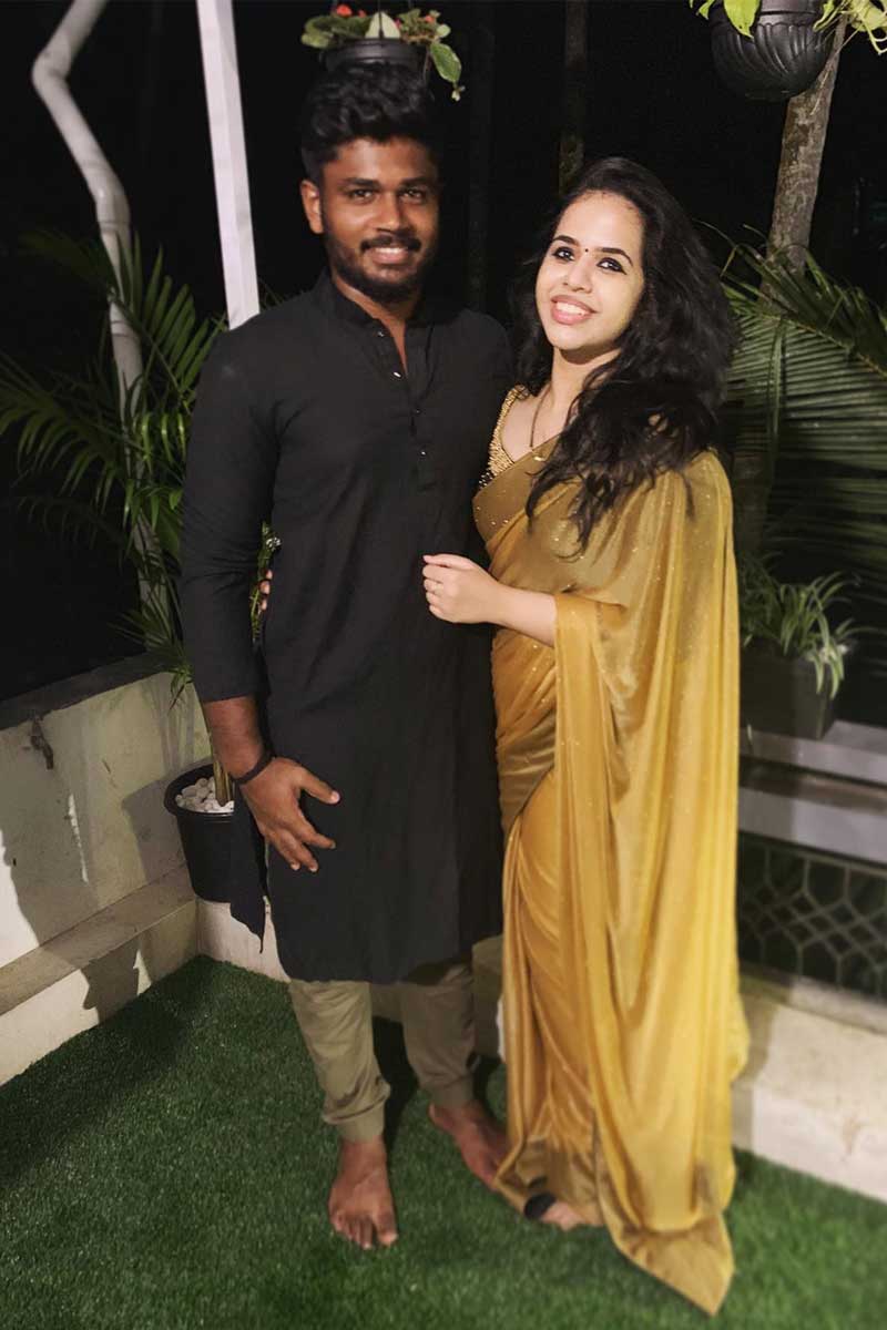২০১৩ সালের ২২ আগস্ট। ঘড়িতে তখন রাত ১১.১১ মিনিট। চারুলতাকে ‘হাই’ লিখে একটি মেসেজ করেন। সেখান থেকেই কথা শুরু। প্রথমে বন্ধুত্বের অনুরাগ। সেই অনুরাগ থেকে প্রেম। তারপর সংসার। কলেজের পর দু'জনের দেখা হয়নি বহুদিন। কেরিয়ারে মনোনিবেশ করেছিলেন তাঁরা। হিউম্যান রিসোর্সে বিএসসি চারুলতা। স্নাতকোত্তরও করেছেন। কিন্তু দূরত্ব পছন্দ হয়নি সঞ্জুর। চারুলতাকে মেসেজ করেও উত্তর পাননি। এরপর সঞ্জু সটান চলে গিয়েছিলেন চারুলতার কলেজে। চারুলতা সঞ্জুর বড় সমর্থক। বহুবার তাঁকে গ্যালারিতে দেখা গিয়েছে সঞ্জুর হয়ে গলা ফাটাতে। তা সে আন্তর্জাতিক পর্যায়েই হোক কিংবা আইপিএল। ইডেনে অবশ্য তিনি গ্যালারিতে উপস্থিত থাকতে পারেননি। তাতে কী? ম্যাচের পর ভিডিও কলে কথা বলে কৃতিত্ব দিলেন।