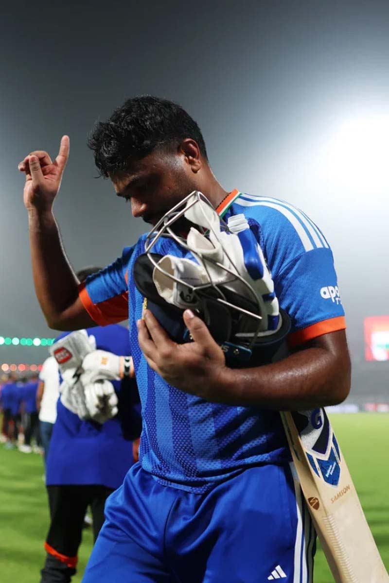 ম্যাচের পর সঞ্জু বললেন, "যেদিন থেকে ক্রিকেট খেলা শুরু করেছি, যেদিন থেকে দেশের জন্য খেলছি, সেদিন থেকে এই ইনিংসটার জন্য অপেক্ষা করেছি। আমার ক্রিকেট সফরে বহু উত্থান-পতন ছিল। নিজের ক্ষমতা নিয়ে সংশয় প্রকাশ করেছি। ভাবতাম, আমি কি পারব? কিন্তু এই দিনটার জন্য ঈশ্বরের কাছে কৃতজ্ঞ।" আর বিশেষ সেলিব্রেশন নিয়ে বললেন, "এটা খুবই বিশেষ মুহূর্ত ছিল আমার জন্য। কিছু কিছু বিষয়ে বিশ্বাস করি আমি। সেই কারণে এমন সেলিব্রেশনের অর্থ প্রকাশ্যে আনতে চাই না। কেন এভাবে সেলিব্রেশন, সেই কারণটা ব্যক্তিগতই থাক।"