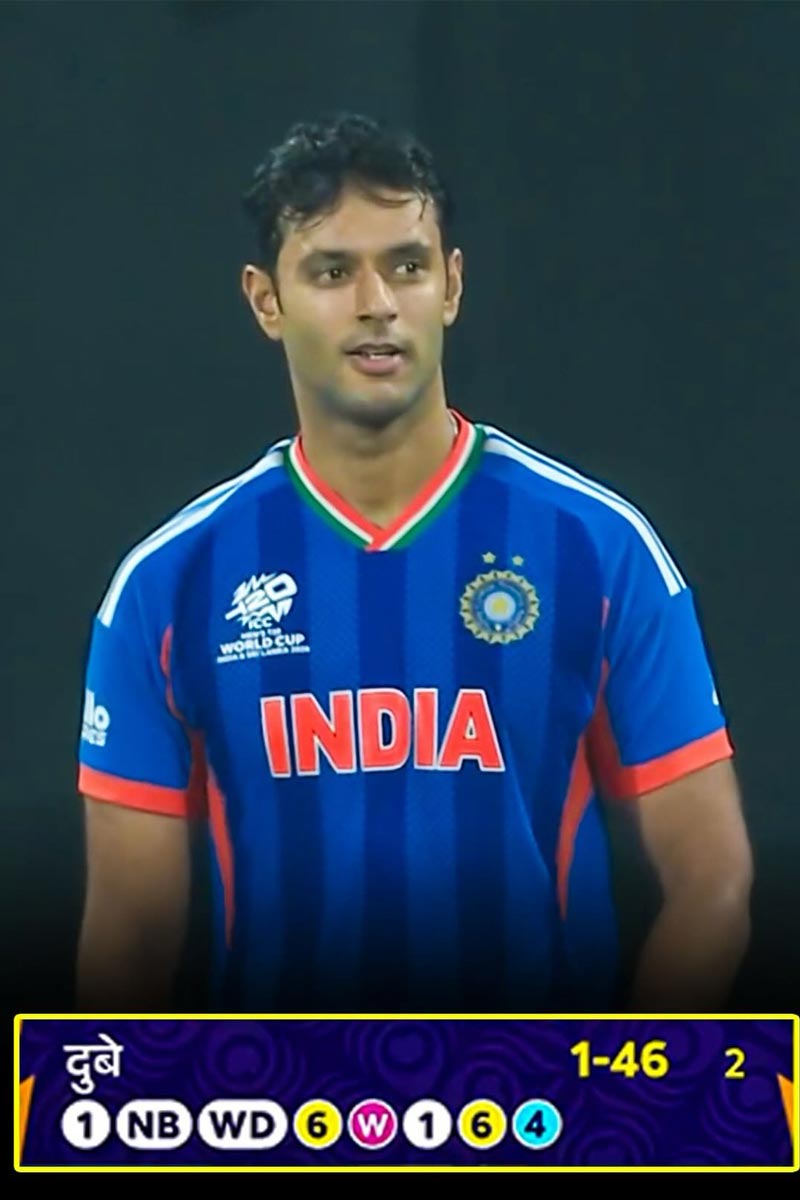 দশম ওভারে ১০ বলে ওভার শেষ করেছেন শিবম দুবে। দিয়েছেন ২৬ রান। এরমধ্যে তিনটি ওয়াইড একটা নো বল। ২, ৬, ৪, ৪, ওয়াইড, ০, নো বল, ওয়াইড, ওয়াইড, ৬। এর মধ্যে আবার তাঁর একটি বল উইকেটের বাইরে পিচ করে। যা নিয়ে নেটিজেনদের অনেকেই তাঁকে কটাক্ষ করে বলছেন, 'এর চেয়ে তো আমরা অনেক ভালো বল করতাম। আন্তর্জাতিক স্তরে এমন বোলিং ভাবা যায় না।'