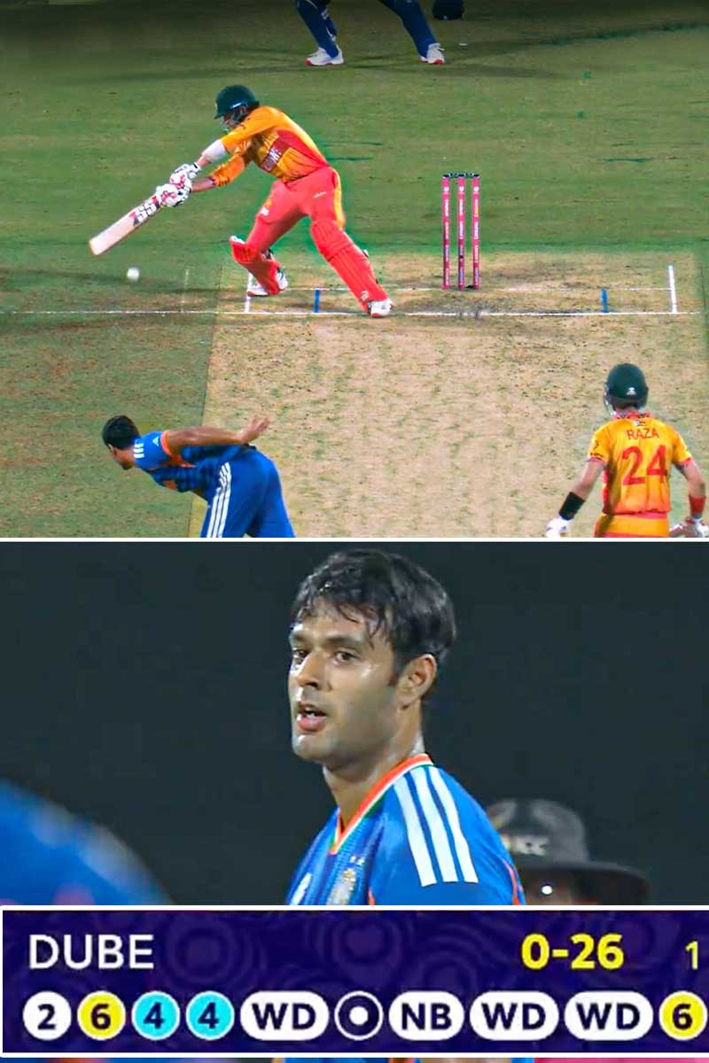 তাঁকে দিয়ে বোলিং করানোর বুদ্ধিটা ঠিক কার, সেটা কে জানে! প্রথম ওভারে ২৬ রান দিলেন। সেটা দেখার পরও শেষ ওভারে ফের দুবেকে নিয়ে আসা হল। এবার দিলেন কুড়ি রান! প্রাক্তন ক্রিকেটার আকাশ চোপড়া তাঁর ইউটিউব চ্যানেলে বলছেন, "শেষ তিন ম্যাচে ৭ ওভারে ১১৩ রান দিয়েছে দুবে। জিম্বাবোয়ের বিরুদ্ধে দিল ২ ওভারে ৪৬। আগের ম্যাচে ২ ওভারে ৩২। তার আগের ম্যাচে ৩ ওভারে ৩৫। সমস্যা হল ওকে বল করতেই হবে। কারণ ও দলের ষষ্ঠ বোলার।"