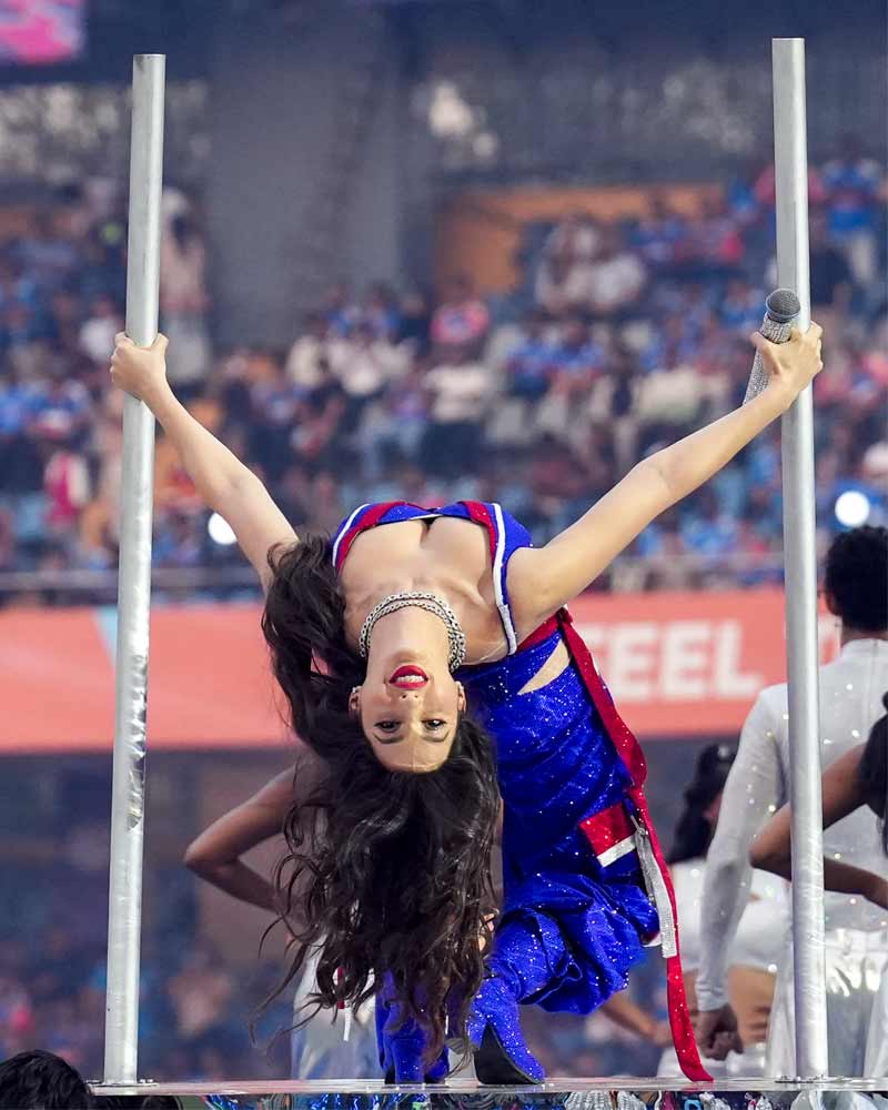 সেখানে মঞ্চ কাঁপালেন বলি অভিনেত্রী এবং নৃত্যশিল্পী নোরা ফতেহি। এর আগেও অবশ্য বিশ্বকাপের মঞ্চে পারফর্ম করেছেন তিনি। ছবি পিটিআই।