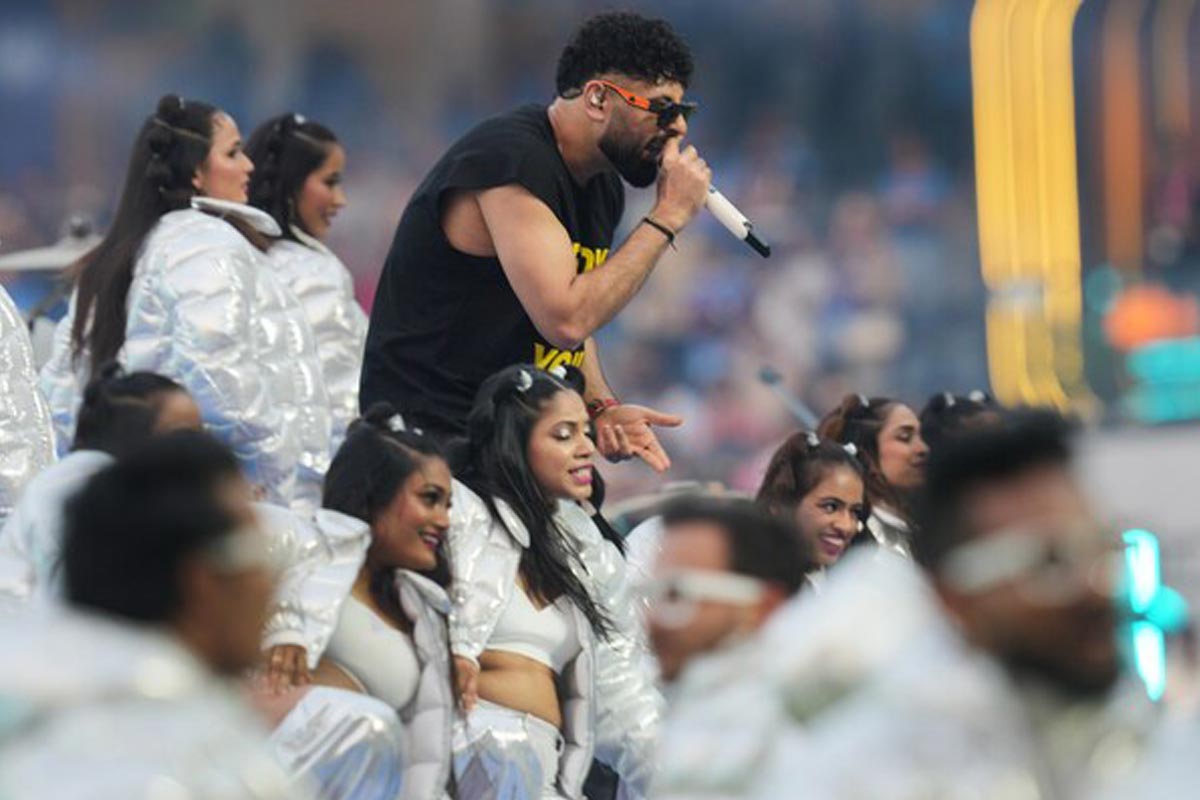 নোরার সঙ্গে ছিলেন গায়ক বাদশা। এছাড়া বিখ্যাত যন্ত্রবাদক শিবমণিও ছিলেন উদ্বোধনী অনুষ্ঠানে। তাঁদের সুরঝঙ্কারে পা মেলালেন স্টেডিয়ামে উপস্থিত দর্শকরা। ছবি পিটিআই।