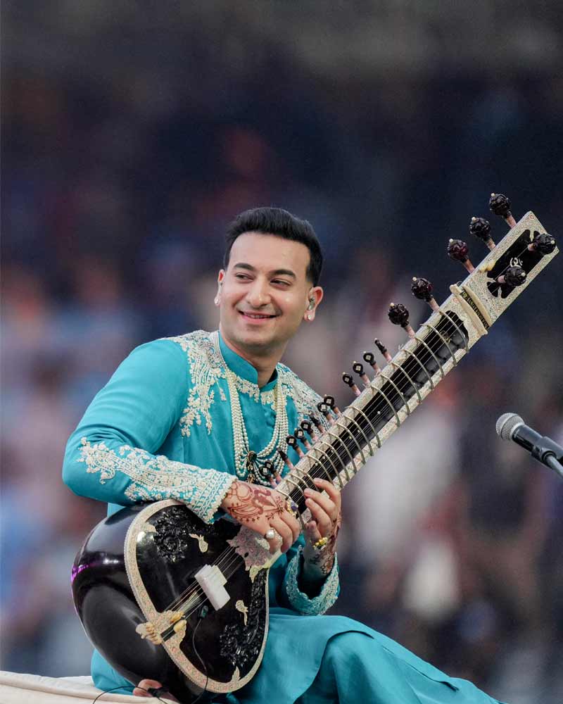 সেতার বাদক ঋষভ রিখিরাম শর্মাও ছিলেন। ভারত-আমেরিকা ম্যাচের আগেই এই অনুষ্ঠানটি হয়। শিল্পীদের সঙ্গে ছিলেন তাঁদের গোটা টিমও। অনুষ্ঠানে পরিবেশিত হয় ভারতীয় মার্গ সংগীত ও পপ সংগীতের মেলবন্ধন। সেতার বাদক ঋষভ রিখিরাম শর্মাও ছিলেন। ভারত-আমেরিকা ম্যাচের আগেই এই অনুষ্ঠানটি হয়। শিল্পীদের সঙ্গে ছিলেন তাঁদের গোটা টিমও। অনুষ্ঠানে পরিবেশিত হয় ভারতীয় মার্গ সংগীত ও পপ সংগীতের মেলবন্ধন। ছবি পিটিআই।