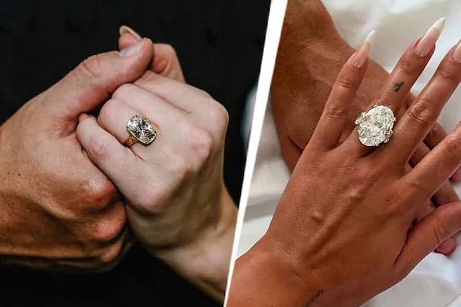 ১১ আগস্ট বাগদানের ঘোষণা করেছেন রোনাল্ডোও। জর্জিনা রডরিগেজকে দেওয়া আংটিটি ছিল ৩৭ ক্যারেটের। আংটির দৈর্ঘ্য লম্বায় প্রায় পাঁচ সেন্টিমিটার। মাঝে রয়েছে ডিম্বাকৃতি একটি বড় হিরে। তার দু'পাশে আরও দু'টি হিরে, কিছুটা ছোট মাপের। গয়না বিশেষজ্ঞদের একাংশের মতে, বড় হিরেটি অন্তত ২৫ থেকে ৩০ ক্যারেটের। আবার কারওর মতে, হিরেটি ১৫ ক্যারেটের। তবে দু'পাশে থাকা হিরে দু'টি সম্ভবত ১ ক্যারেটের।