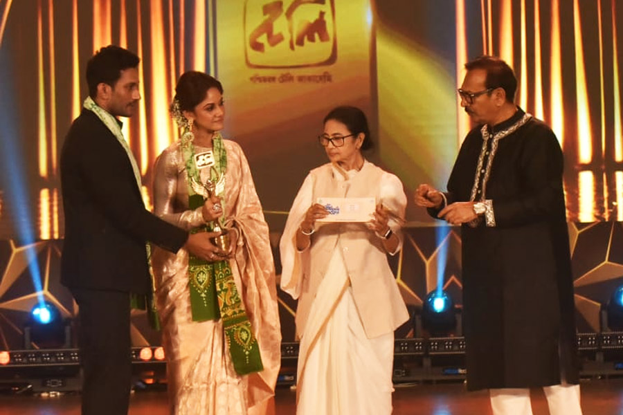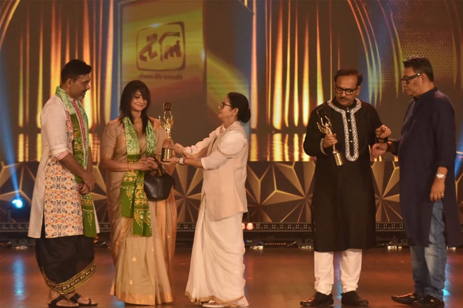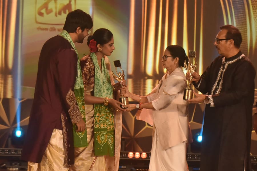 ধারাবাহিকের প্রিয় বউমা এবং প্রিয় ছেলে হিসেবে মুখ্যমন্ত্রীর হাত থেকে পুরস্কার নিলেন ঊষশী রায়, সোনামণি সাহা, সুস্মিতা দে, নীল ভট্টাচার্য, সুস্মিত মুখোপাধ্যায়, রাহুল মজুমদার।