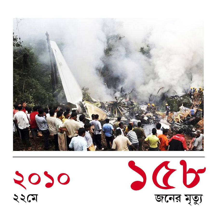 অহমেদাবাদে ভয়ংকর বিমান দুর্ঘটনা। টেক অফের খানিকক্ষণের মধ্যেই বিমানবন্দরের কাছে ভেঙে পড়ে এয়ার ইন্ডিয়ার যাত্রীবাহী বিমান। লন্ডনগামী উড়ানের দুর্ঘটনায় অন্তত ২০০ জনের মৃত্যুর আশঙ্কা করা হচ্ছে। তবে এর আগে এরকমই একাধিক ভয়াবহ বিমান দুর্ঘটনার সাক্ষী থেকেছে দেশ। এক নজরে ফিরে দেখা যাক অতীতের সেই সব মর্মান্তিত অধ্যায়। ২০১০ সালে ম্যাঙ্গালোর বিমানবন্দরের রানওয়েতে নামতেই দুর্ঘটনার শিকার হয় এয়ার ইন্ডিয়ার বিমান। বিমানটি দুবাই থেকে আসছিল। মর্মান্তিক এই দুর্ঘটনায় মৃত্যু হয় ১৫৮ জন যাত্রীর।