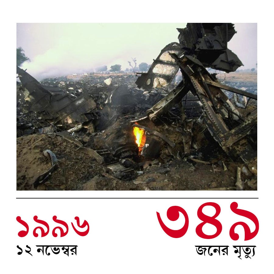 ১৯৯৬ সালে হরিয়ানায় মাঝআকাশে সৌদি আরব ও কাজাখাস্তানের দু'টি বিমানের সংঘর্ষে মৃত্যু হয় ৩৪৯ জনের। ভারতের মাটিতে এখনও পর্যন্ত সবচেয়ে ভয়াবহ বিমান দুর্ঘটনা এটিই।