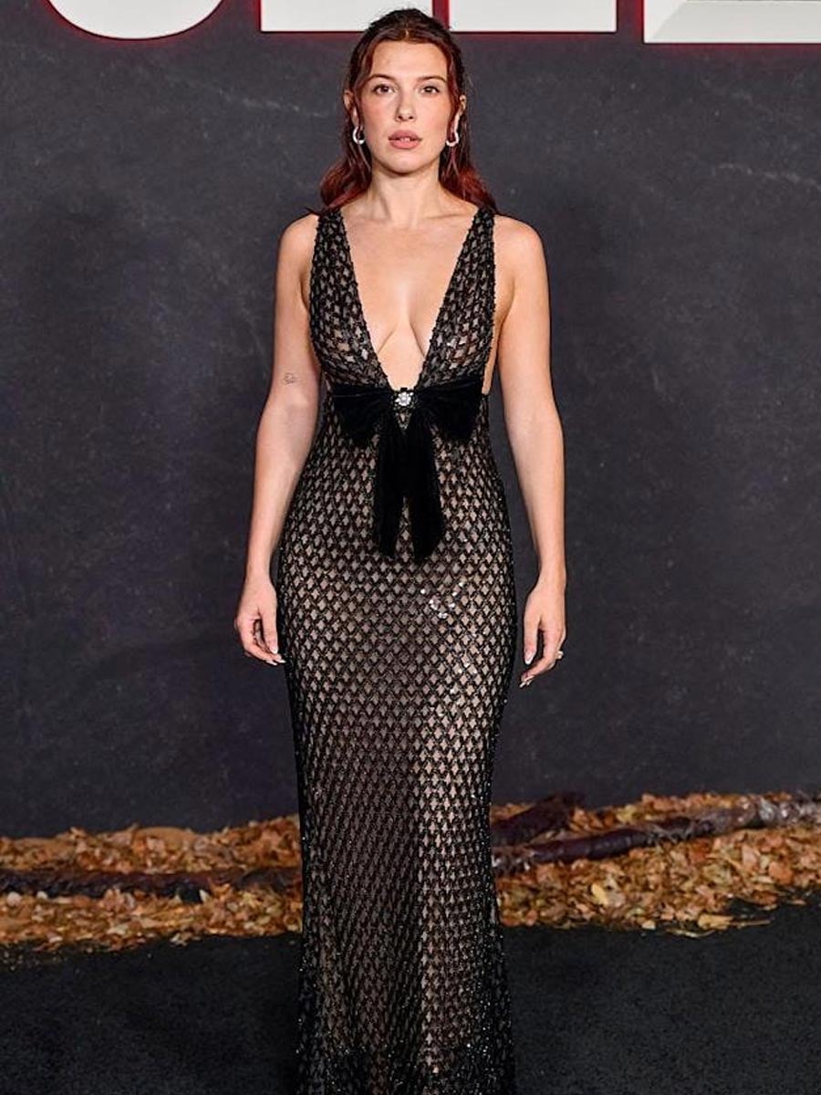 'স্ট্রেঞ্জার থিংস ৫'-এর এক অনুষ্ঠানে মিলি বনি বোঞ্জিওভি এমন একটি কালো পোশাক বেছে নিয়েছিলেন যা দেখলে পুরুষকুলের চোখ ফেরানো দায়! ডিপকাট নেক থেকে উঁকি দেওয়া সুডৌল স্তন আর আওয়ার গ্লাস শরীরী গড়নে লাল গালিচায় আগুন ঝরিয়েছিলেন অভিনেত্রী।