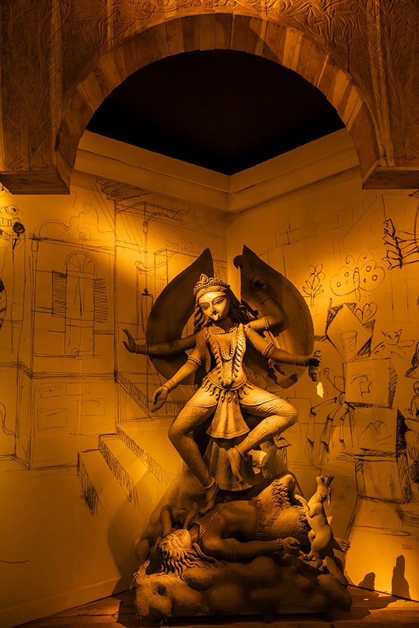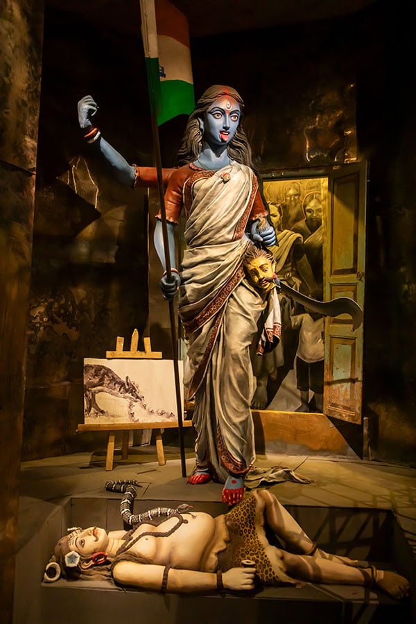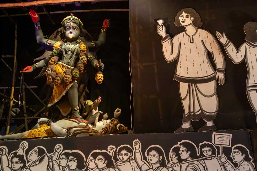 স্বদেশী আন্দোলনে উল্লেখযোগ্য ভূমিকা ছিল কলকাতার তৈরি সুলেখার কালির। দীর্ঘ ইতিহাস রয়েছে তার। ব্রিটিশ আমলে এই কালির ব্যবহারেই স্বদেশি পণ্যের ডাক দিয়েছিলেন বিপ্লবীরা। সেই টুকরো ইতিহাসই এবার এই মণ্ডপের আকর্ষণ। থিমের সঙ্গে সামঞ্জস্য রেখে প্রতিমাও এখানে প্রতিবাদী। তাঁর হাতে ব্রিটিশ আমলের তেরঙ্গা। পুজো পরিক্রমায় এই মণ্ডপগুলি মিস করবেন না।
