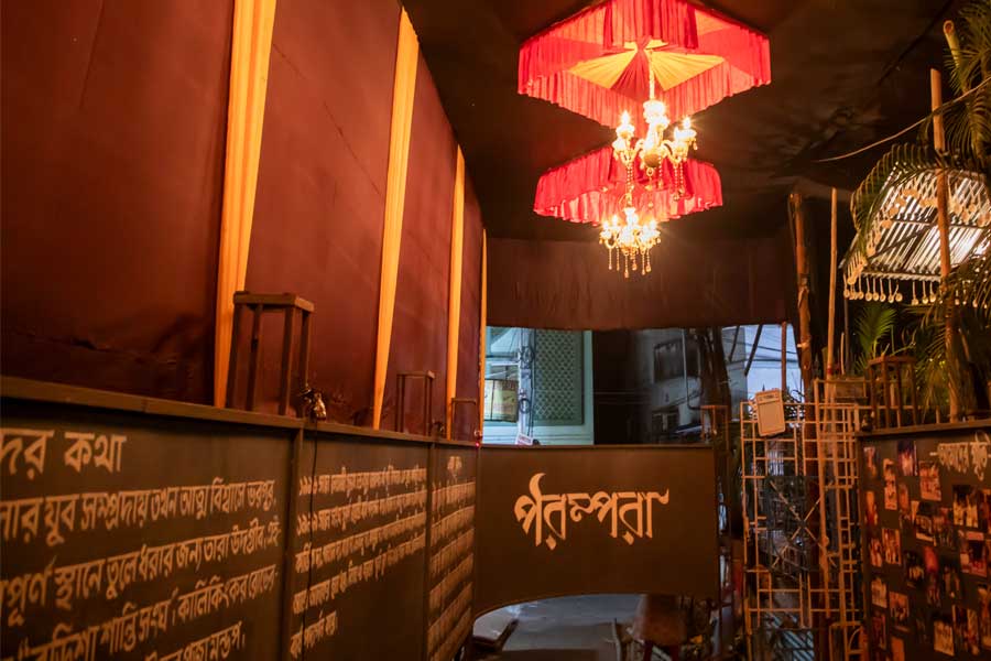 বড়িশা শান্তি সংঘের এবারের পুজোর থিম 'পরম্পরা'। সময়ের সঙ্গে বদলে যাচ্ছে বাংলা এবং বাঙালির 'পরম্পরা'ও। হারিয়ে যাচ্ছে পাড়ার পুজোয় স্থানীয়দের আন্তরিকতা। তা মাথায় রেখেই এবারের বড়িশা শান্তি সংঘের পুজো মণ্ডপকে সাজিয়ে তুলেছেন শিল্পী মানস দাস।