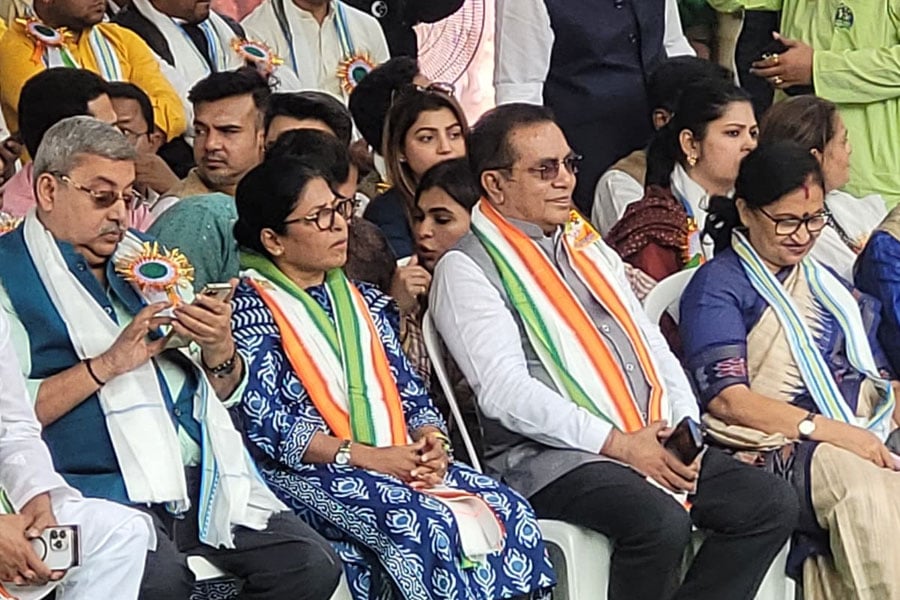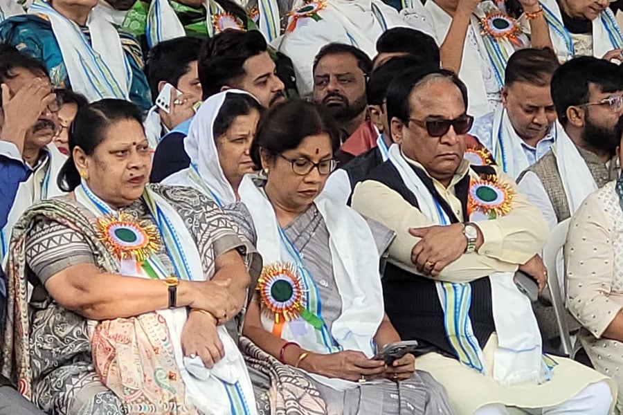 মঞ্চ থেকেও তৃণমূল নেতৃত্ব সাম্প্রদায়িক সম্প্রীতি ও একতার বার্তা দিয়েছেন। বাংলার মানুষ ধর্মান্ধতায় বিশ্বাস করে না। ধর্মের নামে বিজেপি বিভাজনের চেষ্টা করছে, সেই বার্তাও এদিন মঞ্চ থেকে দেওয়া হয়েছে। ছবি: সুমন দাস