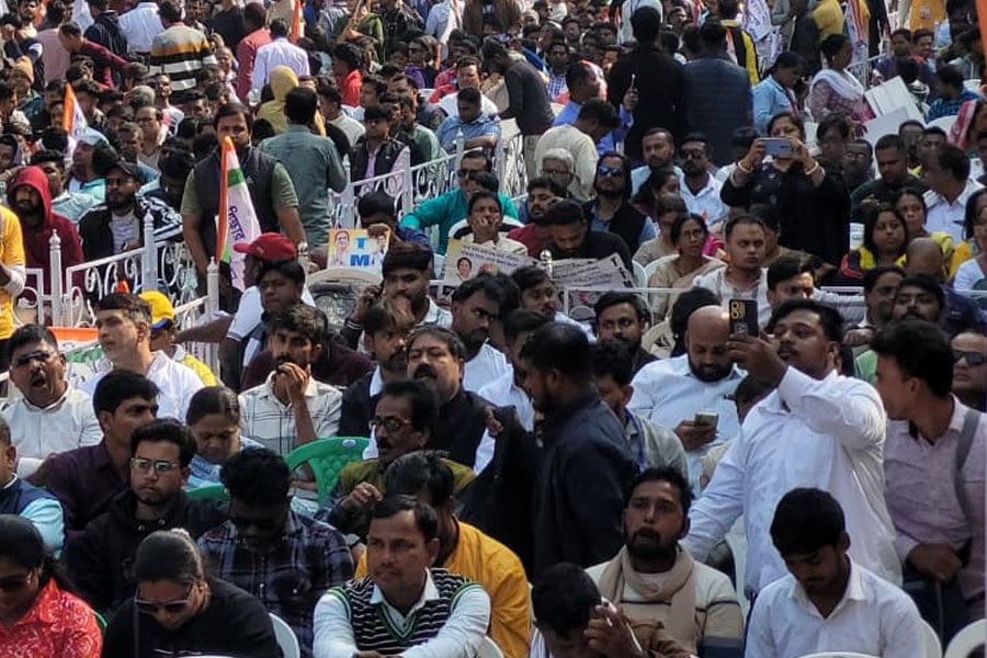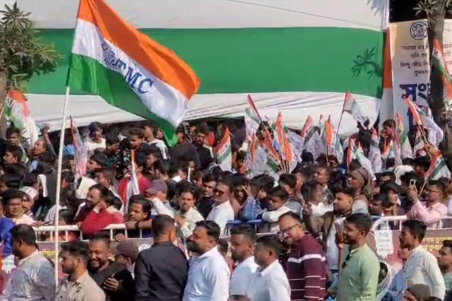 বেলা বাড়তেই তৃণমূল কংগ্রেসের কর্মী-সমর্থক থেকে ছাত্র, যুব সংগঠনের সদস্যরা হাজির হতে শুরু করেন ধর্মতলা চত্বরে। মিছিল আসতে শুরু করে বিভিন্ন জায়গা থেকে। মূলত কলকাতার পাশাপাশি দুই ২৪ পরগনা ও হাওড়ার ছাত্র-যুবদেরই মূলত এই কর্মসূচিতে আসতে বলা হয়েছে। ছবি: সুমন দাস