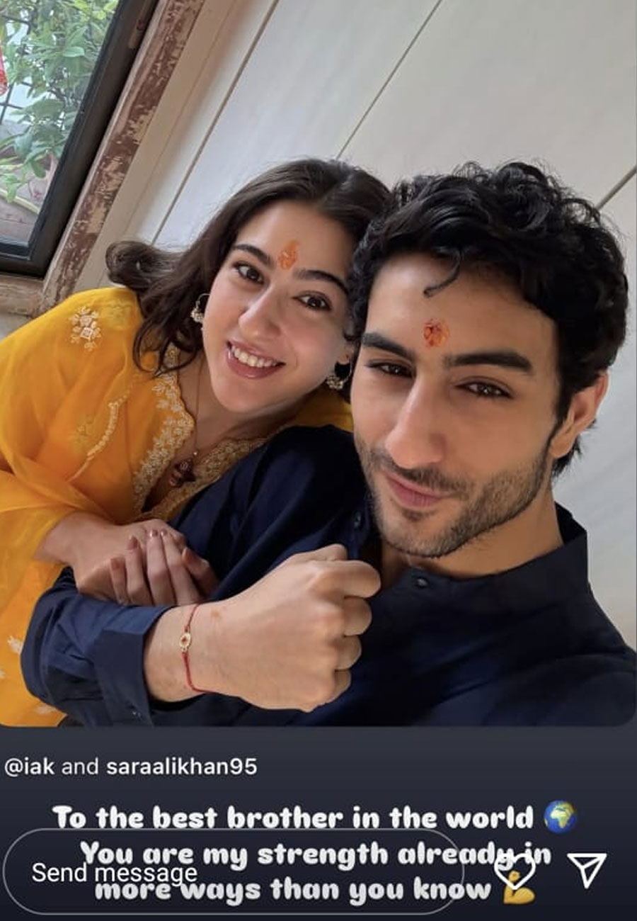 বলিপাড়ার ভাই-বোন ইব্রাহিম ও সারা আলি খান। রাখির দিন ভাই ইব্রাহিমকে রাখি পরিয়ে এদিনটা উদযাপন করলেন সারা, সোশাল মিডিয়ায় ভাগ করে নিলেন সেই ছবিই।
