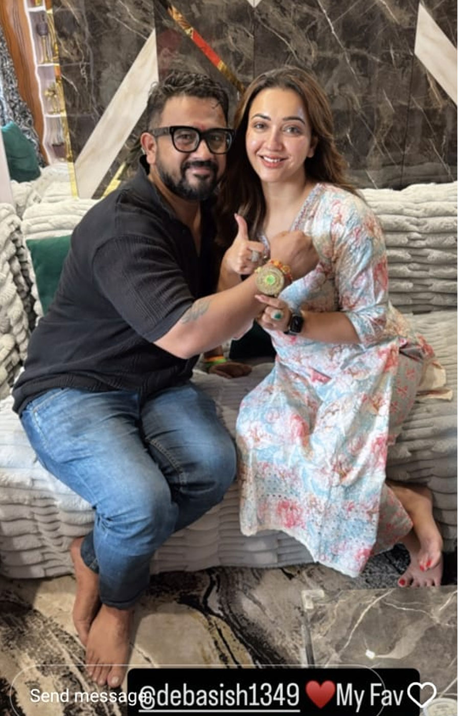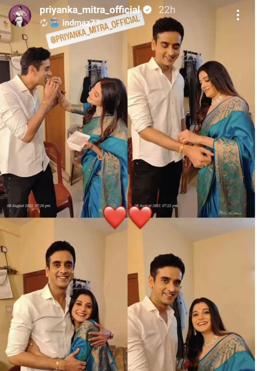 শুটিংয়ের ফাঁকে কিছুটা সময়। কিন্তু দিনের বেশিরভাগ সময়টাই কাটে শুটিংয়ের সেটে। সেখানেই সখ্যতা জমে ওঠা মানুষগুলোর সঙ্গে বিশেষ দিনের সেলিব্রেশনে মেতে ওঠেন ছোট পর্দার অভিনেতা-অভিনেত্রীরা। সেভাবেই সহ-অভিনেতার হাতে রাখি পরিয়ে দিলেন অভিনেত্রী প্রিয়াঙ্কা মিত্র।