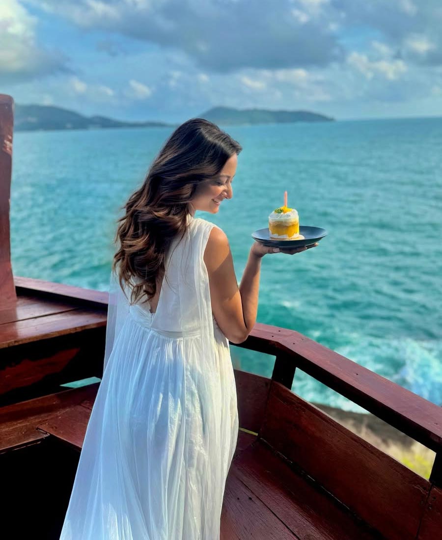কখনও লাল বিকিনি পরে সমুদ্র বিলাসী অবতারে ধরা দিলেন তো কখনও বা আবার উত্তাল নীল জলরাশির বুকে বোটে দাঁড়িয়ে শ্বেতশুভ্র পোশাকে হাতে কেক নিয়ে ছবি শেয়ার করেছেন।