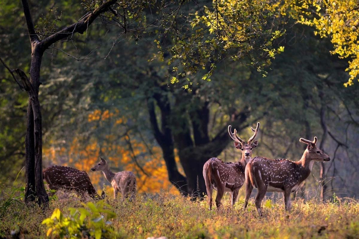 রণথম্ভোর ন্যাশনাল পার্ক, রাজস্থান: বাঘের ডেরা, মরুরাজ্যের কেল্লা আর গভীর জঙ্গল। রণথম্ভোর এক আশ্চর্য মায়ালোক। শুষ্ক পর্ণমোচী অরণ্যে গ্রীষ্মে বাঘ দেখা যাওয়ার সম্ভাবনা সবচেয়ে বেশি। জয়পুর থেকে ১৬০ কিমি দূরে অবস্থিত এই পার্কে জলকাদা মাখা কুমির আর চিতাবাঘেরও দাপট কম নয়!