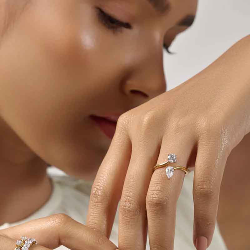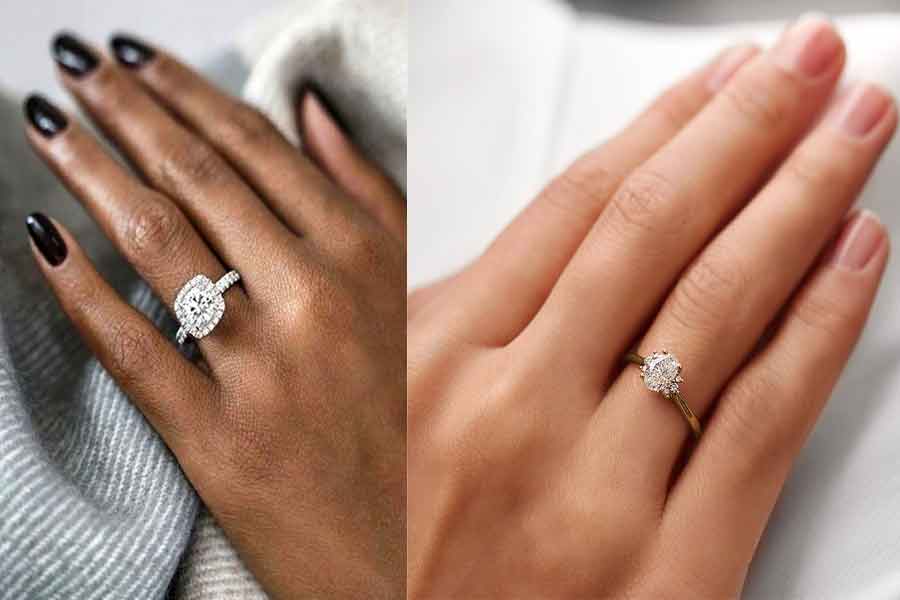 বর্তমানে বহু ফ্যাশনিয়েস্তার মন জয় করেছে টু স্টোন ডায়মন্ড রিং। তাই এই ধরনের আংটিও আপনি বেছে নিতে পারেন। হাত সরু হলে খুব বড় মাপের হিরে দেওয়া গয়না কিনবেন না। তা বেমানান লাগতে পারে। আপনার হাতের গড়নের উপর নির্ভর করে হিরের আংটি বাছুন।