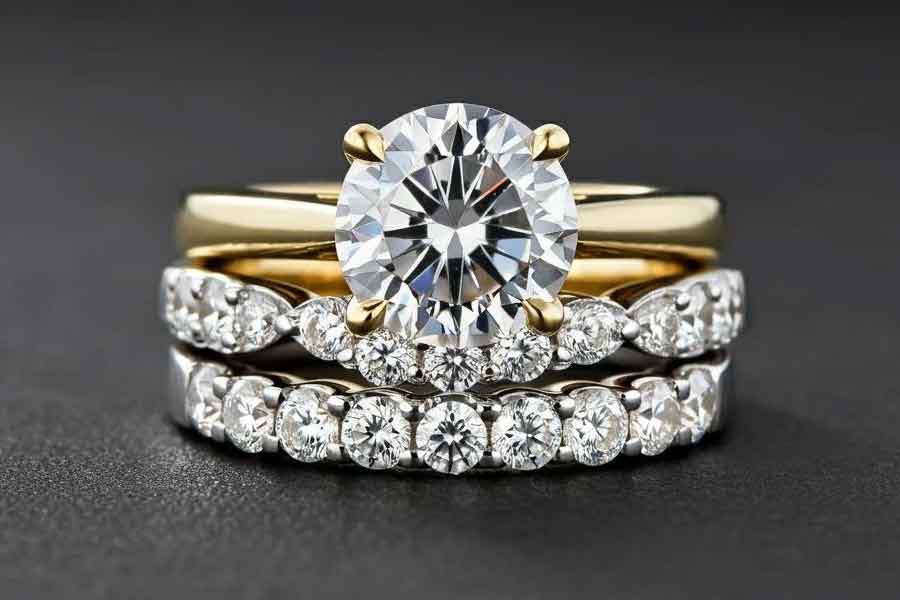 ইয়েলো গোল্ড ও প্লাটিনামের সঙ্গে হিরের সঙ্গত। এই ধরনের হিরের আংটিকে মিক্সড মেটাল ব্যান্ডস বলে। চলতি বছর এই ধরনের গয়না বাজার কাঁপাচ্ছে। তাই আপনিও জীবনের নতুন ইনিংস শুরুর সঙ্গী করতে পারেন এই ট্রেন্ডিং গয়নাকে।