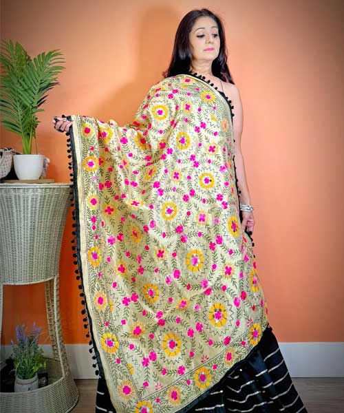 ফুলকারি ওড়নাই হোক আপনার প্রথম পছন্দ। শিফন, সুতি, জর্জেট-সহ আরও নানা ধরনের কাপড়ের উপর ফুলকারি কাজের ওড়না পাওয়া যায়। একরঙের সালোয়ারের সঙ্গে এই ধরনের ওড়না মানাবে বেশ।
