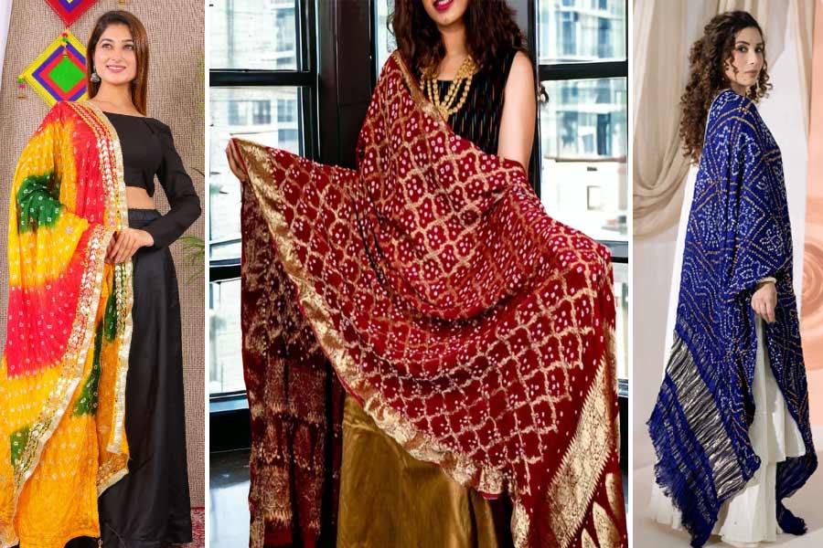 বাঁধনি প্রিন্টের ওড়নাও ফ্যাশনে ইন। বাঁধনি প্রিন্টের ওড়না সাধারণত খুবই রংচঙে। মূলত দোলের সময় এই ধরনের ওড়না নেওয়ার চল বেশি। স্লিভলেস চুড়িদারের সঙ্গে বাঁধনি প্রিন্টের ওড়না মানায় বেশি। সঙ্গে অবশ্যই পরুন ভারী কানের দুল।