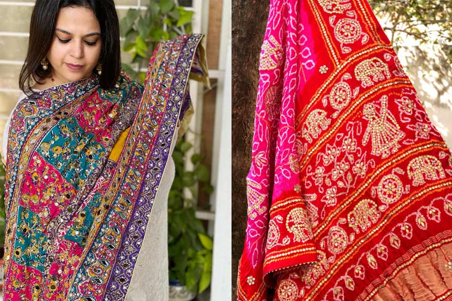 যাঁরা ভারী ওড়না পছন্দ করেন তাঁরা এবার জগদ্ধাত্রী পুজোয় বাছুন মিরর ওয়ার্ক। এই ধরনের ওড়না আপনার সাজগোজকে যে অন্য় চেহারা দেবে, সে বিষয়ে কোনও সন্দেহ নেই।