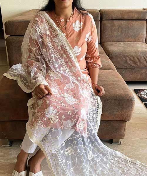 জগদ্ধাত্রী পুজোয় সাদা সালোয়ার পরবেন ভাবছেন? মিক্স অ্যান্ড ম্যাচের পথে না হেঁটে সাদা নেটের ওড়না পরতে পারেন। আপনার দিক থেকে কেউ নজর ফেরাতে পারবে না।