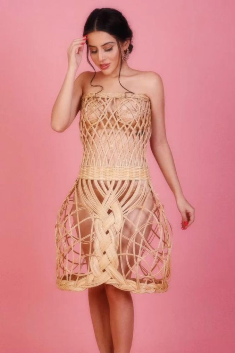সম্প্রতি উরফি জাভেদ মুম্বইয়ের এক অনুষ্ঠানে যোগ দিয়েছিলেন। সেখানেই নীল রঙের এক শর্ট ড্রেসে ধরা দেন তিনি। তবে সূতোর তৈরি নয়, এই পোশাক পুরোটাই তৈরি বোতলের ঢাকনা দিয়ে। বিভিন্ন রঙের বোতলের ঢাকনা দিয়ে এই পোশাক তৈরি করছেন উরফি।