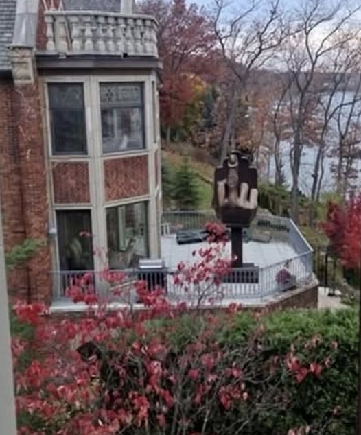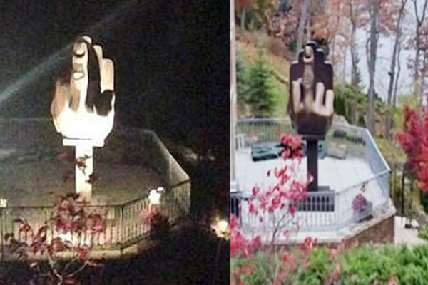 ব্রোঞ্জের ওই মধ্যমার মূর্তিটি ১২ ফুট উচ্চতার। আলো দিয়ে সাজানো। যাতে রাতের অন্ধকারেও দেখতে অসুবিধা না হয়। ওই মূর্তিটি বসাতে খরচ পড়েছে ৬.১ লক্ষ টাকা। অ্যালানের প্রাক্তন স্ত্রী ছবিটি X হ্যান্ডেলে পোস্ট করেন। প্রাক্তন স্বামীর মানসিকতা নিয়ে প্রশ্নও তোলেন তিনি।