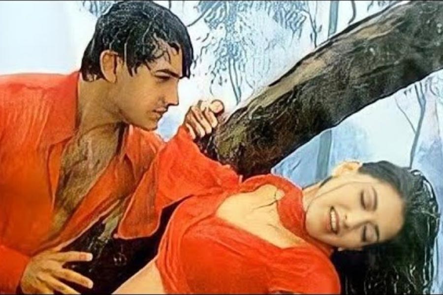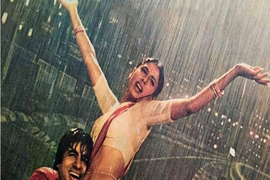 ঝমঝমে বৃষ্টিতে রাজেশ খান্না ও জিনাত আমন। 'আজনবি' ছবির ‘ভিগি ভিগি রাতো মে’ গানটির দৃশ্যায়ন এক আশ্চর্য আবেদনময়। 'সেক্সি' জিনাতের রাতপোশাক যেন বারুদ হয়ে আগুন ধরিয়েছিল বৃষ্টিধারায়।